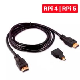 Cabo HDMI com Plug Adaptador Micro HDMI 1,8m para Raspberry Pi 3, Raspberry Pi 4 e Raspberry Pi 5, e de mais dispositivos com entradas HDMI.
