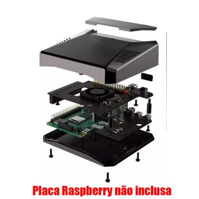 A parte superior da caixa inteira atua como um resfriamento passivo para o raspberry pi, combinado com o ventilador de resfriamento incluído e várias aberturas de fluxo de ar, traz excelente efeito de resfriamento