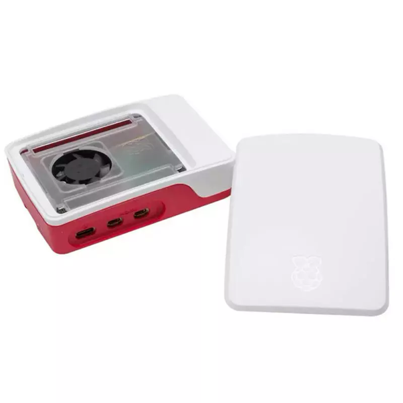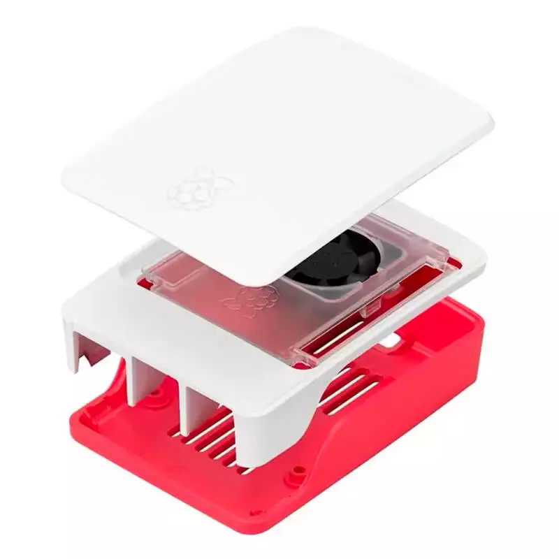 Ao contrário da Case Raspberry Pi 4, a case do Raspberry Pi 5 é composta por quatro partes que se encaixam e inclui um cooler para resfriamento ativo. Este ventilador mantém o Raspberry Pi 5 em uma temperatura de operação confortável, mesmo sob uma carga considerável.
